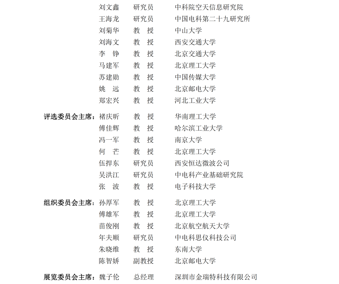 北京作为我国的政治、文化和国际交往和科技创新中心,也是微波毫米波领域开展科研攻关、推动产业发展的重要城市,汇集了众多著名高校、科研院所和技术企业,汇聚了大量高水平创新人才,作为本次大会举办的地点,具有特殊的意义。为了确保会议的顺利举行,中国电子学会微波分会、北京理工大学、北京邮电大学、清华大学等承办单位的领导和同事们付出了大量的心血和努力。在此,我们向为大会付出辛勤劳动的各位专家、领导和同事表示衷心的感谢!