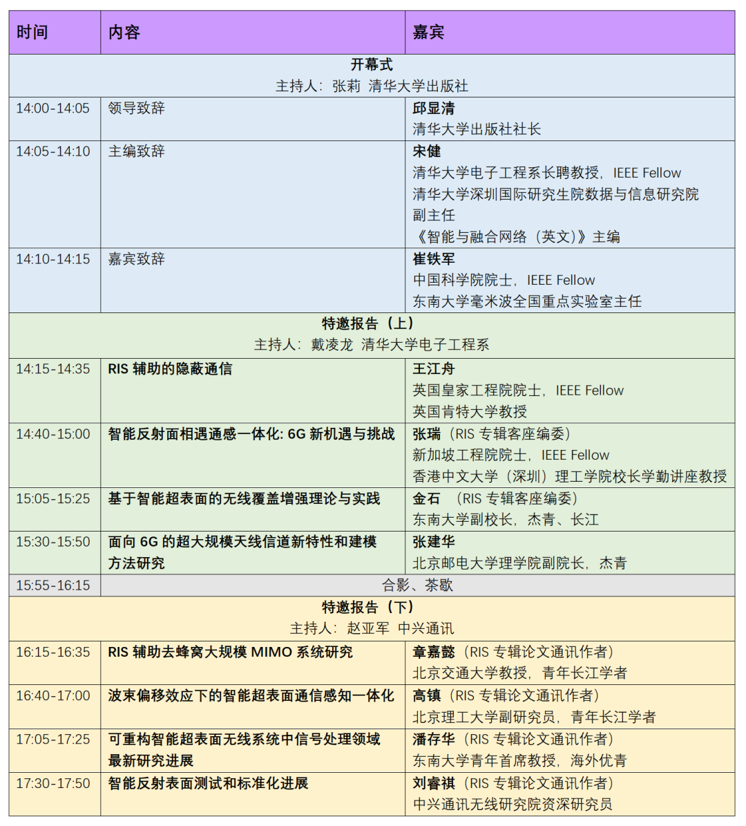 研讨会全程直播,关注本公众号,或智能超表面技术联盟(RISTA)公众号后续推文获取直播地址。