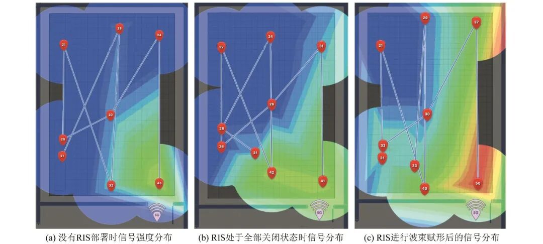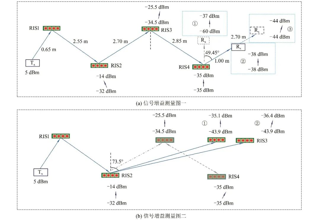 图30 无RIS辅助下(-66 dBm)和4块RIS辅助下(-37 dBm)的接收信号强度
