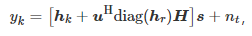 式中:hd∈CM×K为用户到基站之间直射路径(LOS, line-of-sight);hr∈CM×K为用户到RIS之间的信道;H∈CM×N为基站到RIS之间的信道;s∈CN×1为基站的发送信号;nt为加性高斯白噪声;Θ=diag([Φ1,,Φ2,⋯,ΦM]T)表示RIS的反射系数矩阵,其中,diag(⋅)返回一个对角矩阵,Θ对角线上元素表示每个单元的反射系数第m个对角元素,记为Φm=βmejφm,其中:φm为相移响应;βm为幅值响应,不失一般性,假定βm=1.