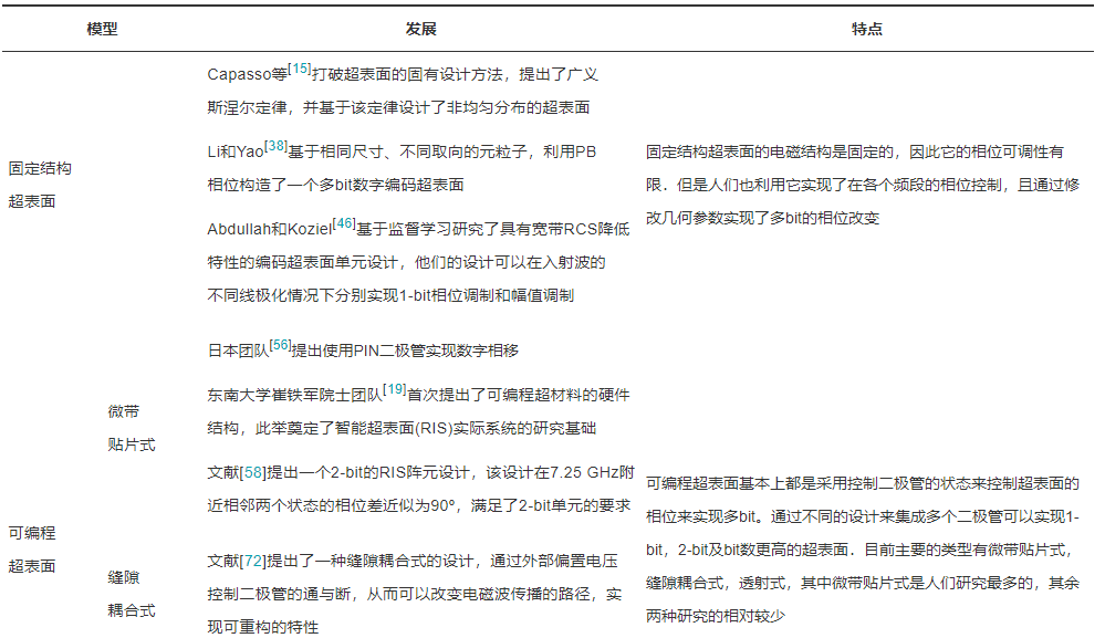 表1 RIS电磁结构模型的发展和特点