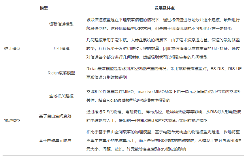 表2 RIS信道模型的基本特点