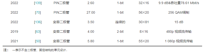 d.高带宽单元设计.当前的单元设计频带较窄,往往只适用几十兆甚至单个频点,以至于在实际应用中当应对不同频段要求时须要设计不同的RIS单元结构.此外,通信频率也在朝着更高频发展,这也意味着更宽的通信频带.目前对于超高的带宽要求,还缺少稳定性能的单元设计.