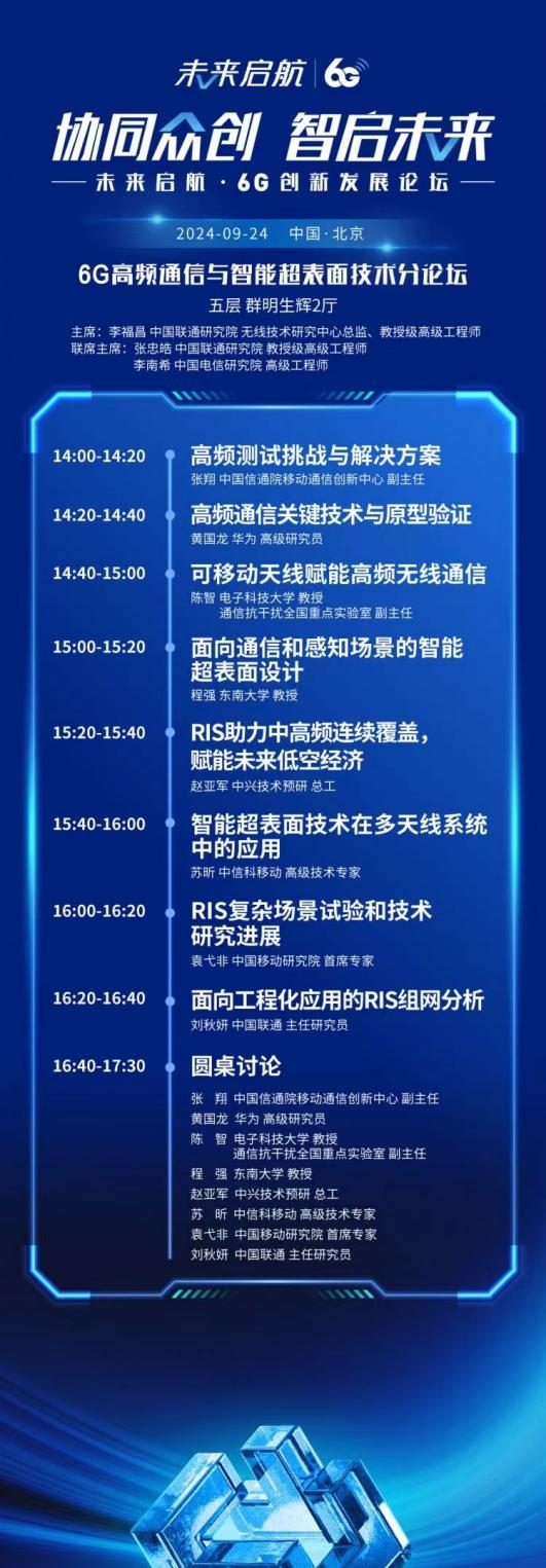 “6G高频通信与智能超表面技术分论坛”时间地点及议程及注册链接如下: