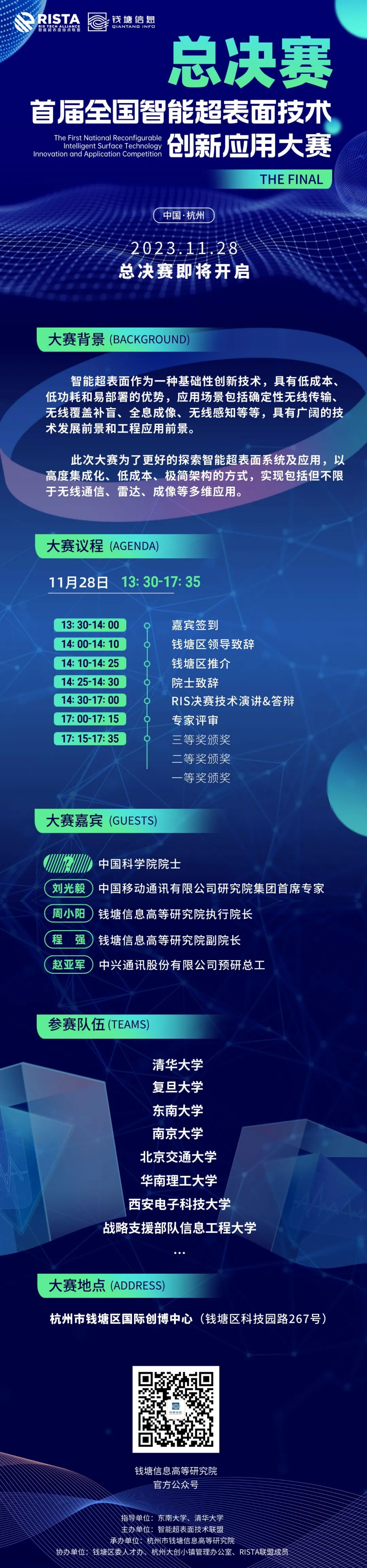 首届全国智能超表面技术创新应用大赛总决赛将于11月28日在杭州举行