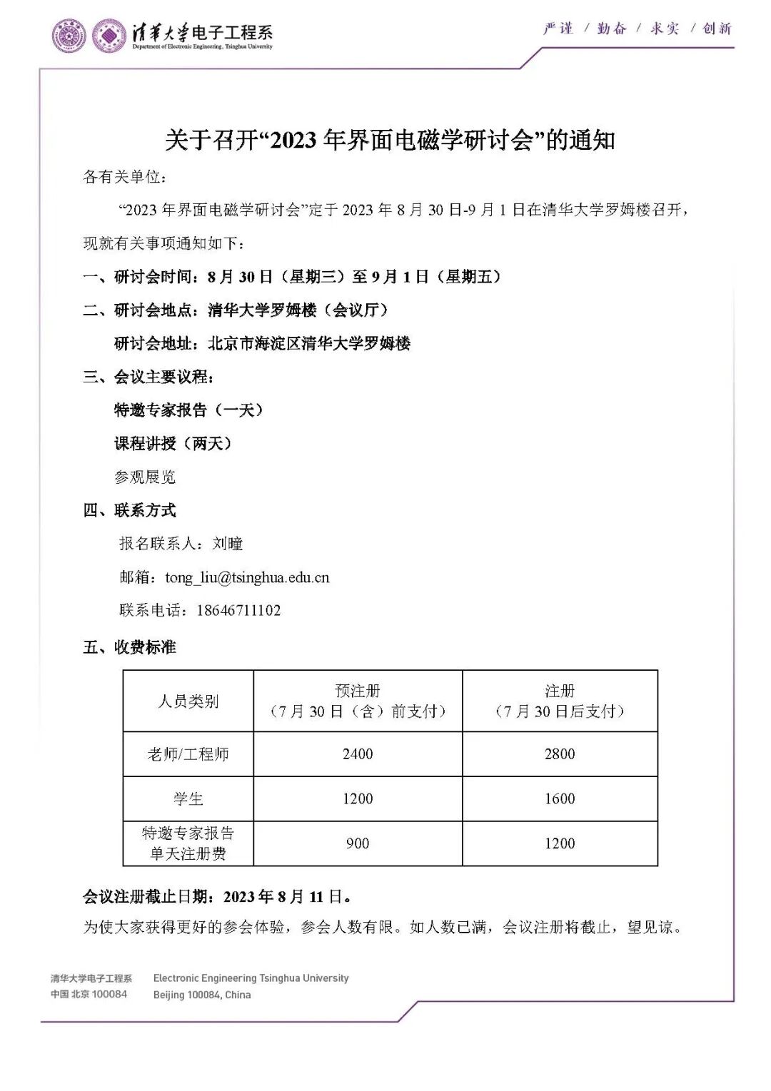 2023年界面电磁学研讨会将于2023年8月30日-9月1日在清华大学罗姆楼召开,欢迎感兴趣的研究人员、老师和同学们参加!