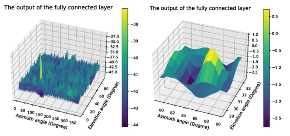 图7 光电混合神经网络生成的角谱(左)粗估计(右)精估计