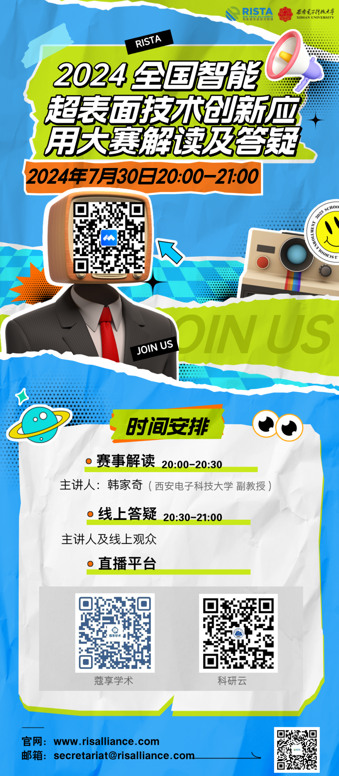 2024年7月30日晚上8:00-9:00,2024年全国智能超表面技术创新应用大赛解读及答疑将在线上举行。欢迎感兴趣的专家、老师及同学参与。
