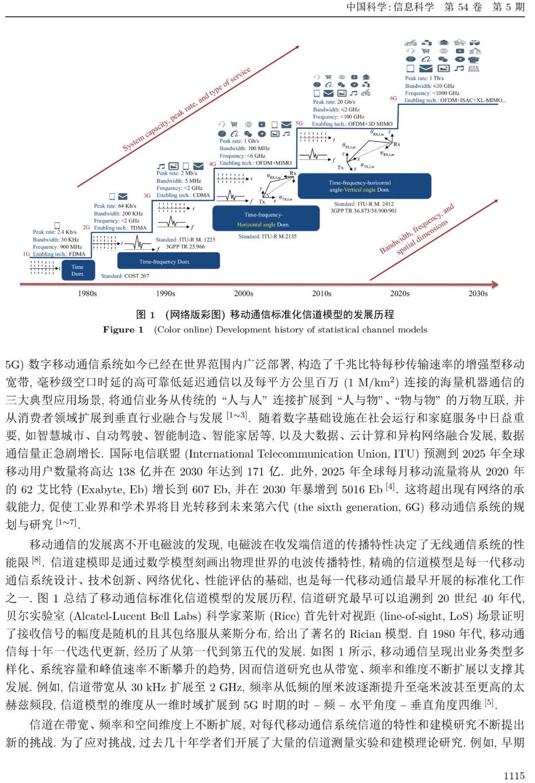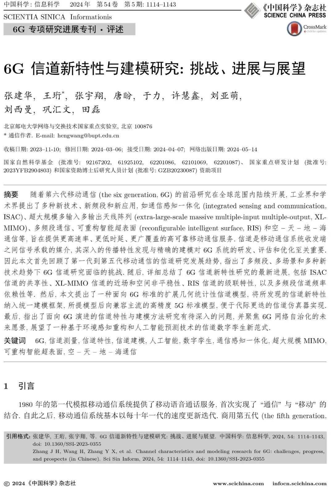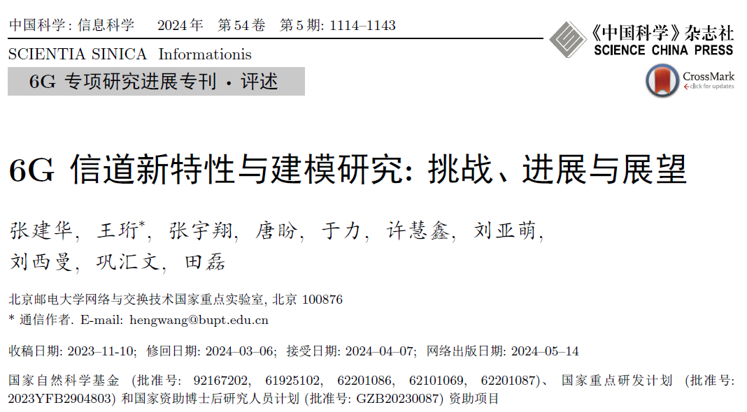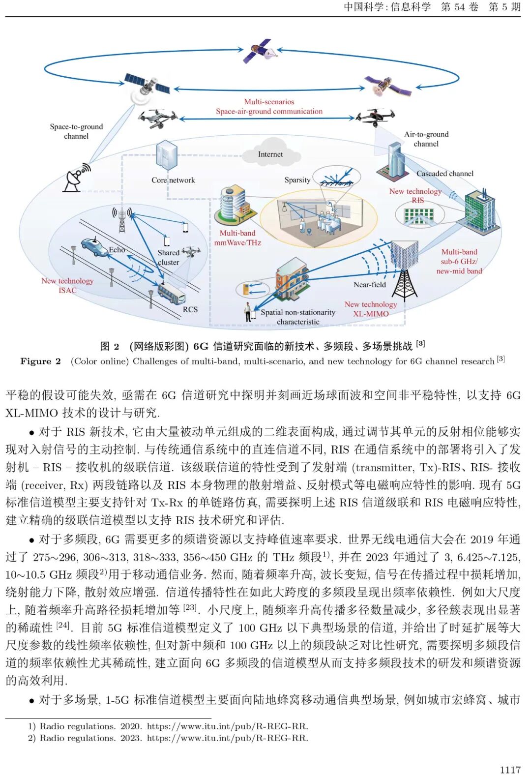 随着第六代移动通信(the six generation, 6G)的前沿研究在全球范围内陆续开展, 工业界和学术界提出了多种新技术、新频段和新应用, 如通信感知一体化(integrated sensing and communication, ISAC)、超大规模多输入多输出天线阵列(extra-large-scale massive multiple-input multiple-output, XLMIMO)、多频段通信、可重构智能超表面(reconfigurable intelligent surface, RIS)和空–天–地–海通信等, 旨在提供更高速率、更低时延、更广覆盖的高可靠移动通信服务. 信道是移动通信系统收发端之间信号承载的媒介, 其深入的传播特性发现与精确的建模对 6G 系统的研发、评估和优化至关重要.