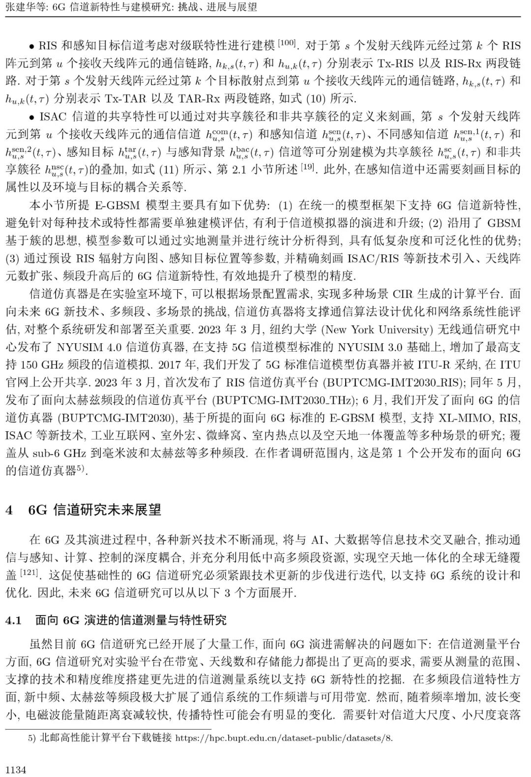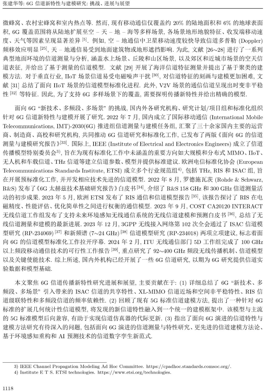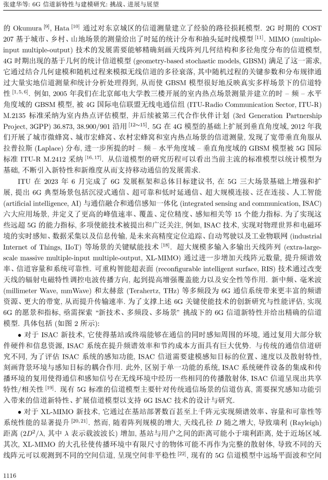 随着第六代移动通信(the six generation, 6G)的前沿研究在全球范围内陆续开展, 工业界和学术界提出了多种新技术、新频段和新应用, 如通信感知一体化(integrated sensing and communication, ISAC)、超大规模多输入多输出天线阵列(extra-large-scale massive multiple-input multiple-output, XLMIMO)、多频段通信、可重构智能超表面(reconfigurable intelligent surface, RIS)和空–天–地–海通信等, 旨在提供更高速率、更低时延、更广覆盖的高可靠移动通信服务. 信道是移动通信系统收发端之间信号承载的媒介, 其深入的传播特性发现与精确的建模对 6G 系统的研发、评估和优化至关重要.