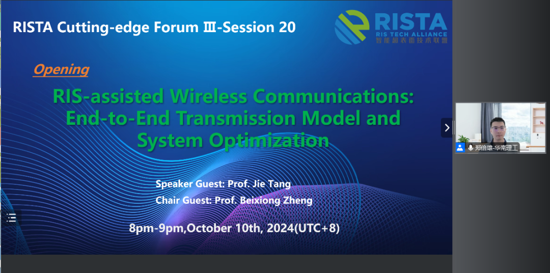 2024年10月10日智能超表面技术联盟主办的RISTA前沿大讲堂第三季第二十期线上研讨讲座在华南理工大学(智能超表面技术联盟成员单位)郑倍雄副教授的主持下圆满结束。