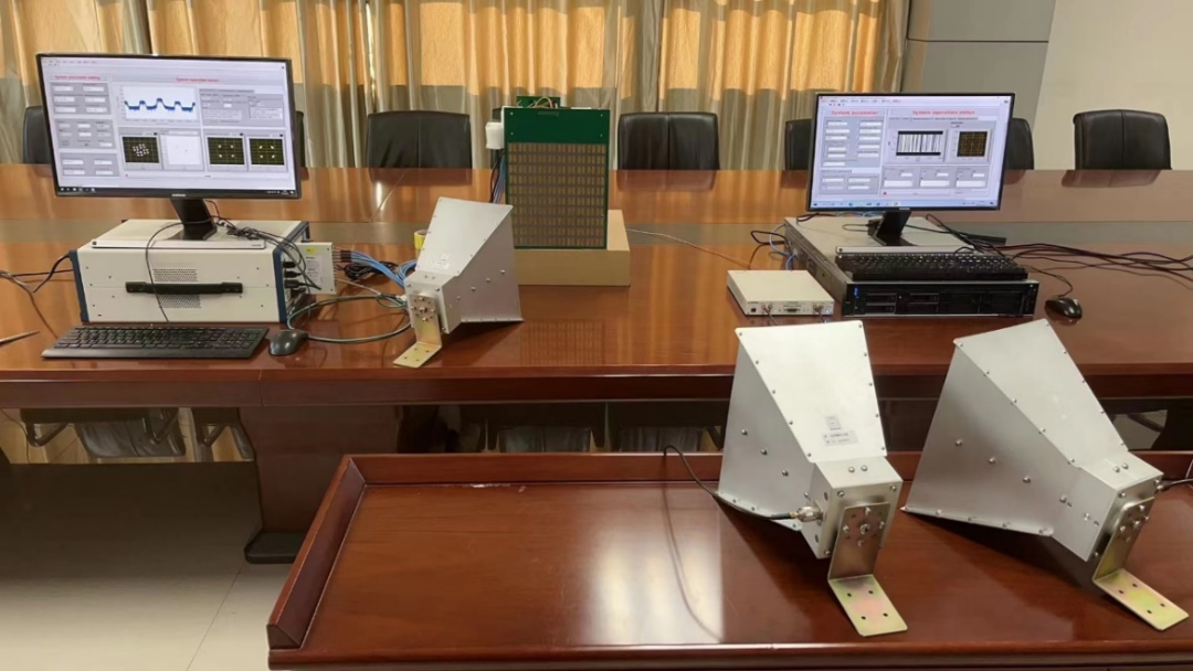 3)团队率先提出并实现了基于RISA的新型无线接收系统。针对传统天线对多径信号的非匹配处理导致的衰落及通信容量下降问题,设计了一种RISA新型接收机来抵御多径衰落和干扰影响,可大幅提高接收效能。搭建了RISA新型无线接收机原理验证系统,完成了空间独立的同频双流视频信号的传输实验,证明单个RISA可能实现多流、多径信号的分离接收与符号解调。