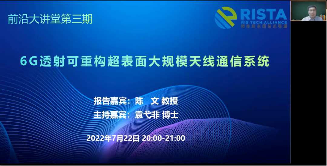 2022年7月22日智能超表面技术联盟主办的RISTA前沿大讲堂第三期线上研讨讲座圆满结束。