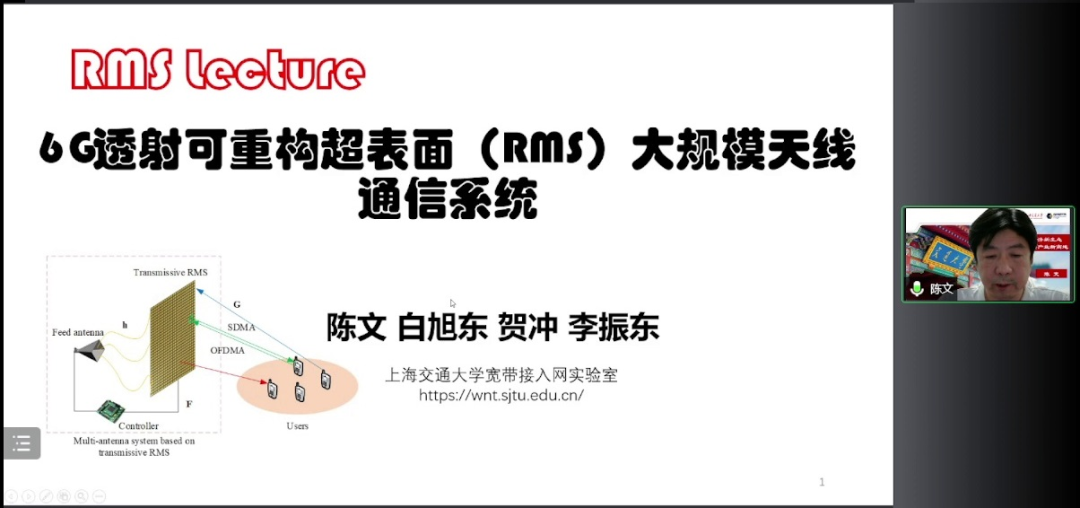 本期讲座嘉宾上海交通大学(智能超表面技术联盟成员单位)陈文教授,为我们带来了“6G透射可重构超表面大规模天线通信系统“主题的报告。