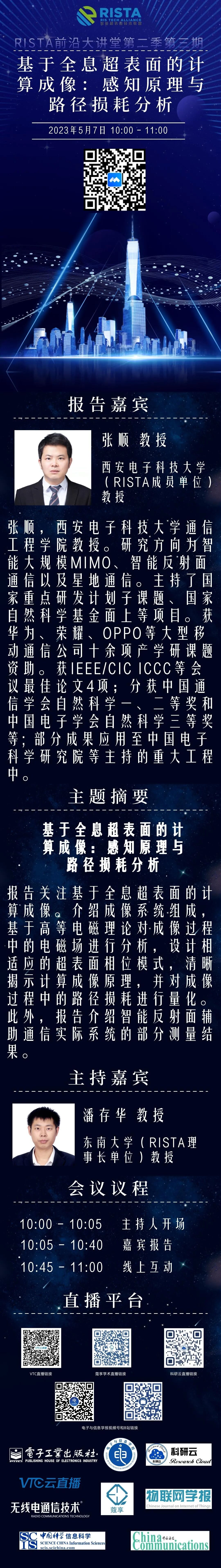 | 2023.05.21 10:00 – 11:00 | 陈晓明 | 6G低轨卫星星座:超越手机直连通信 |