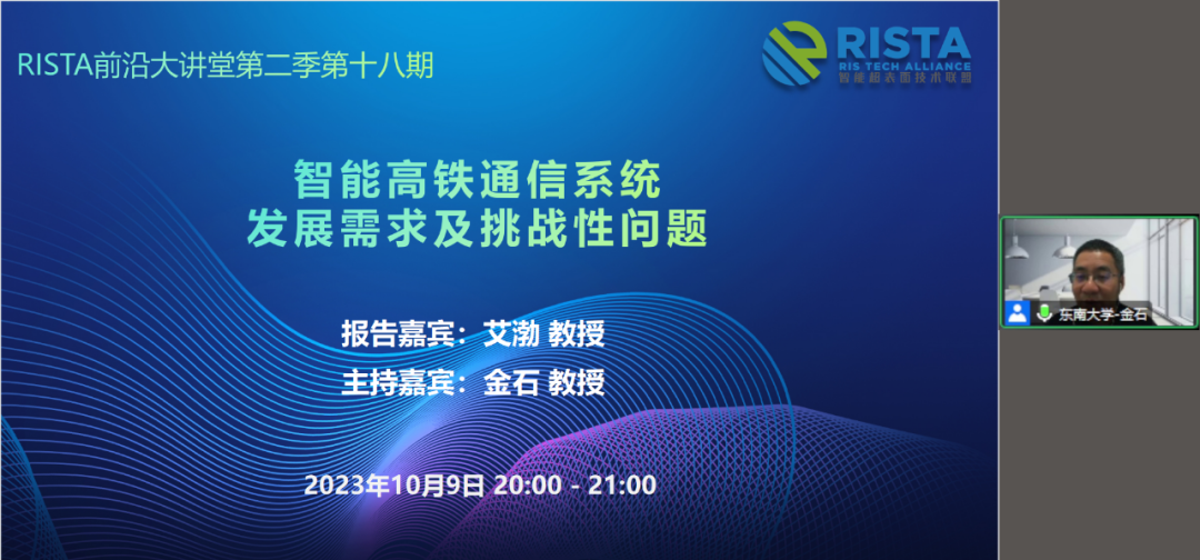 2023年10月9日智能超表面技术联盟主办的RISTA前沿大讲堂第二季第十八期线上研讨讲座在东南大学(智能超表面技术联盟理事长单位)金石教授的主持下圆满结束。
