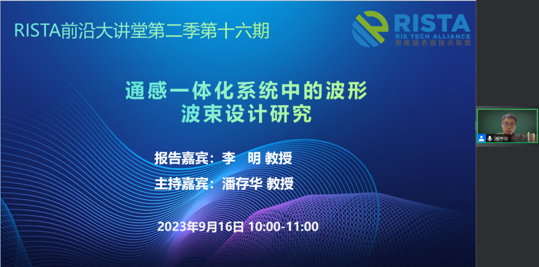 2023年9月16日智能超表面技术联盟主办的RISTA前沿大讲堂第二季第十六期线上研讨讲座在东南大学(智能超表面技术联盟理事长单位)潘存华教授的主持下圆满结束。