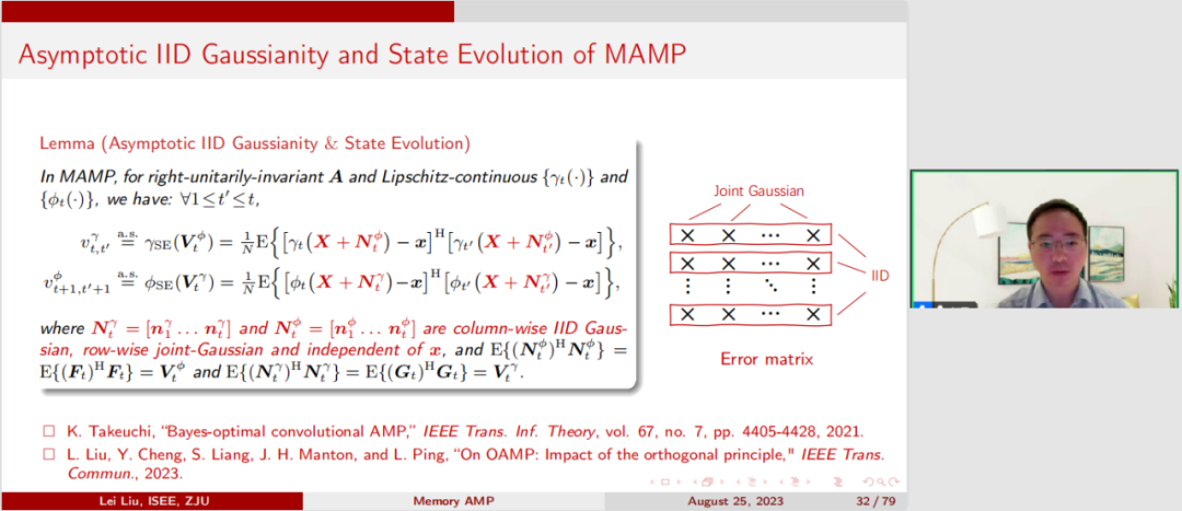 本期讲座嘉宾浙江大学(智能超表面技术联盟成员单位)刘雷研究员为我们带来了“记忆近似消息传递(MAMP)”主题的报告。刘老师与线上观众进行了专业交流。