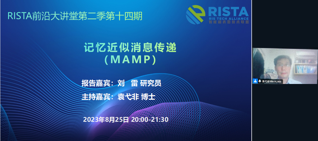 2023年8月25日智能超表面技术联盟主办的RISTA前沿大讲堂第二季第十四期线上研讨讲座在中国移动(智能超表面技术联盟理事长单位)袁弋非博士(智能超表面技术联盟系统技术组组长)的主持下圆满结束。