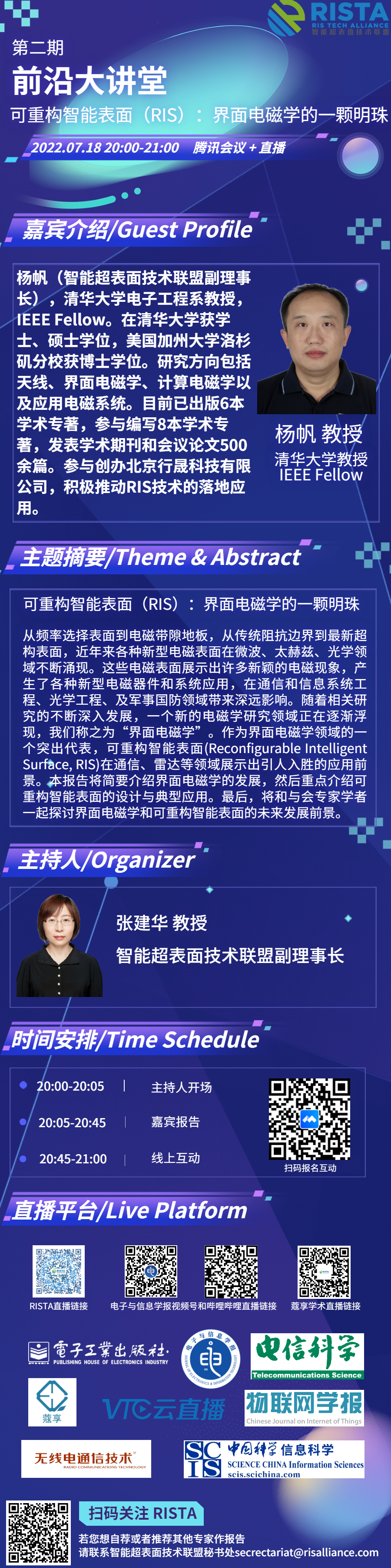 RISTA前沿大讲堂第二期 | 杨帆教授作“可重构智能表面(RIS):界面电磁学的一颗明珠”的报告