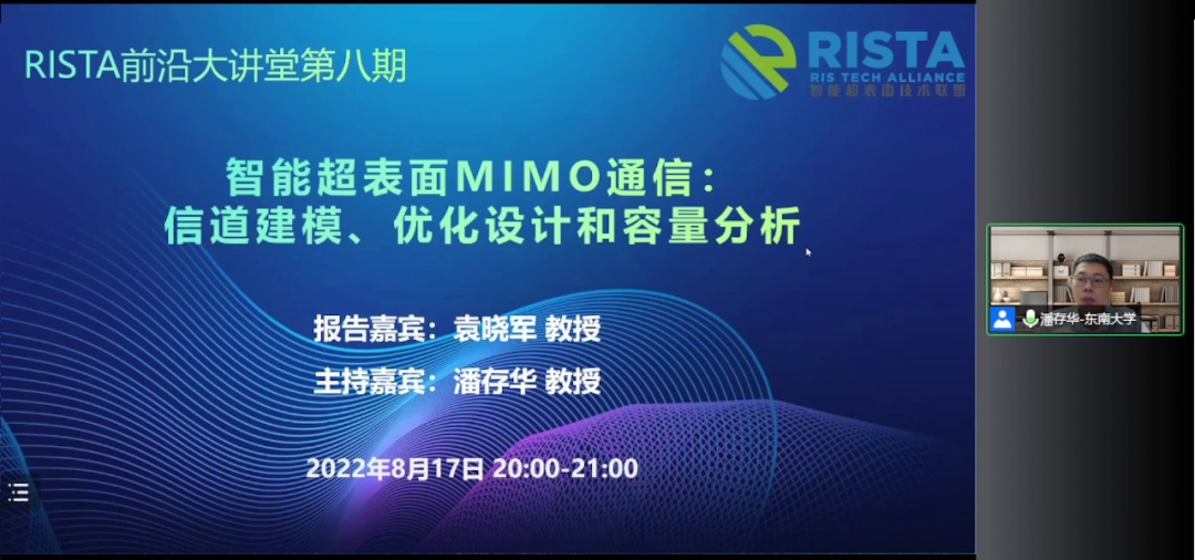 2022年8月17日智能超表面技术联盟主办的RISTA前沿大讲堂第八期线上研讨讲座圆满结束。