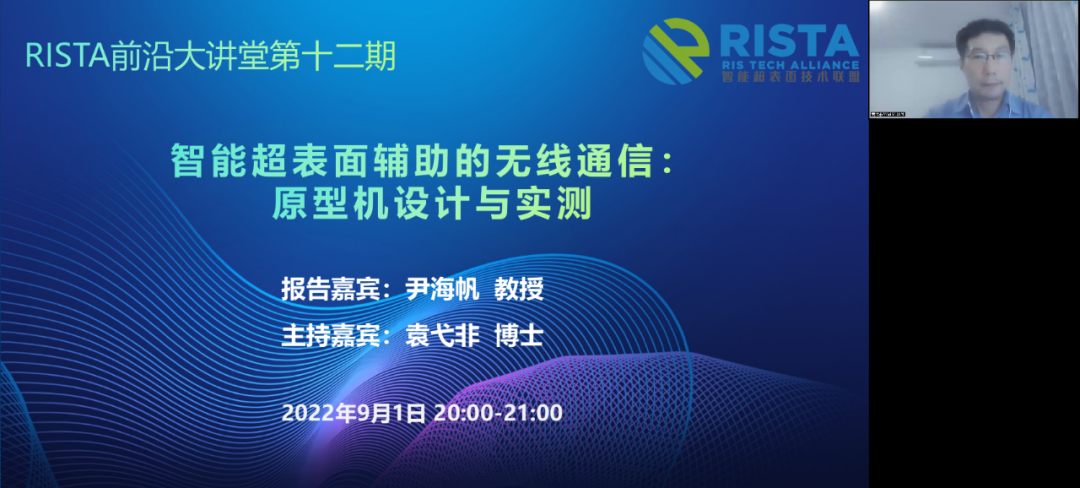 2022年9月1日智能超表面技术联盟主办的RISTA前沿大讲堂第十二期线上研讨讲座圆满结束。