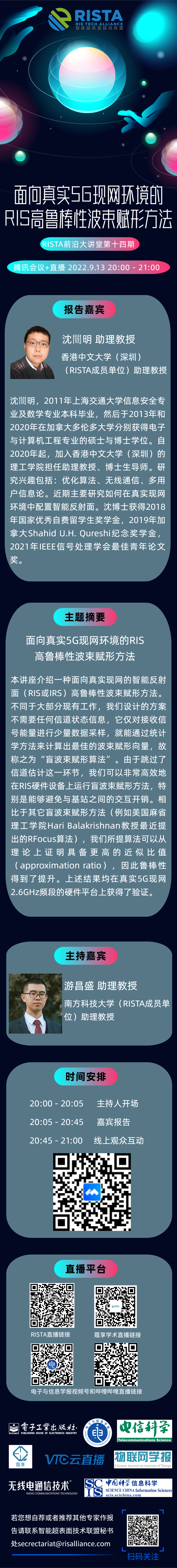 | 2022.9.16 20:00 – 21:00 | 许慎恒 | RIS相控阵:6G技术5G化应用探索 |