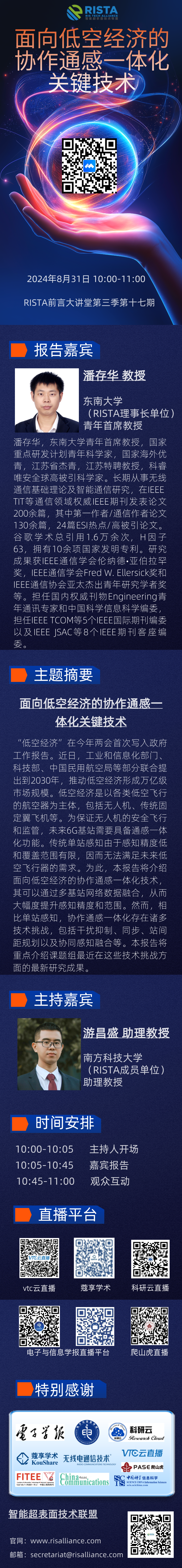 RISTA前沿大讲堂|面向低空经济的协作通感一体化关键技术-东南大学潘存华教授