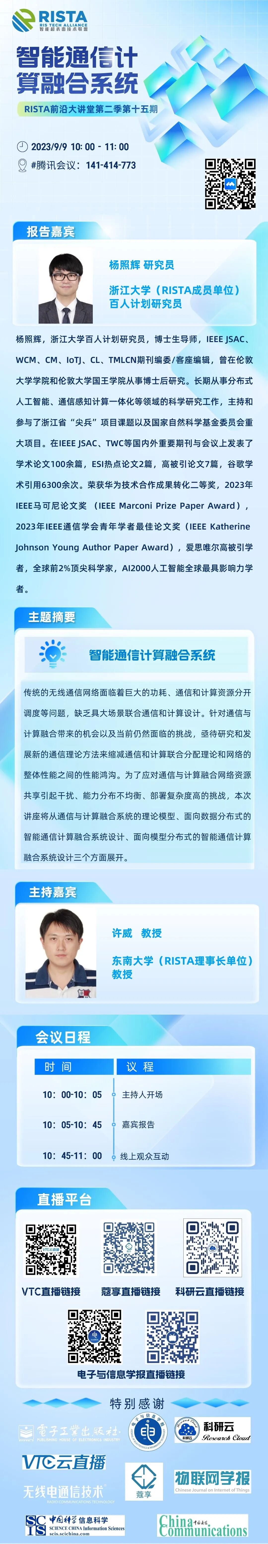 RISTA前沿大讲堂| 智能通信计算融合系统 – 浙江大学杨照辉研究员