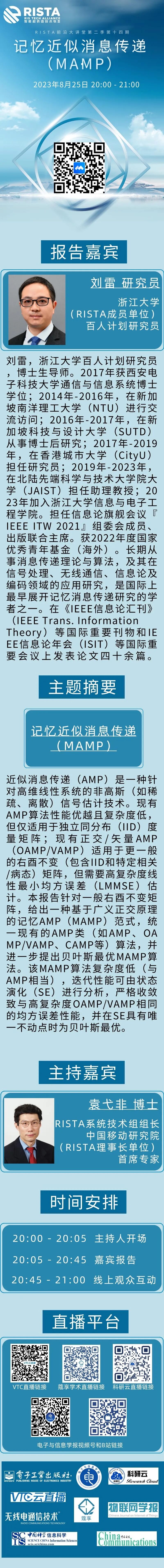 RISTA前沿大讲堂| 记忆近似消息传递(MAMP) – 浙江大学刘雷研究员