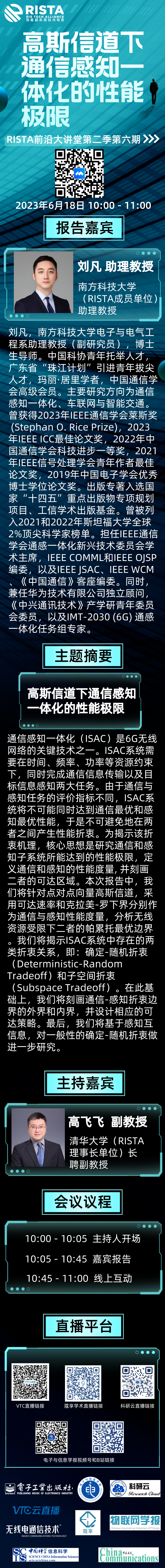 RISTA前沿大讲堂| 高斯信道下通信感知一体化的性能极限-南方科技大学刘凡助理教授