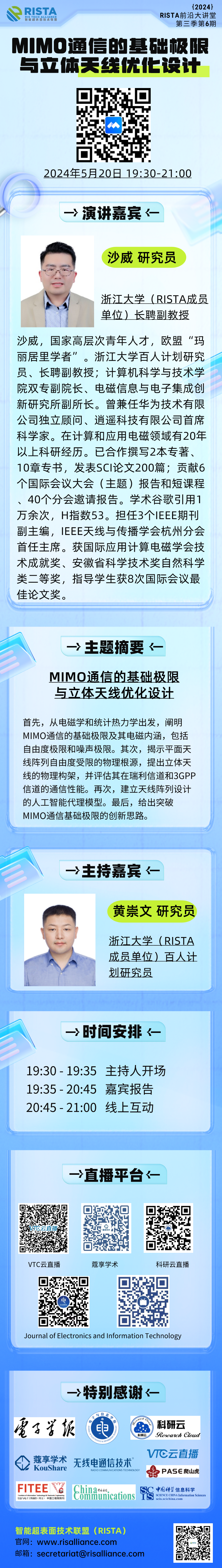 本次系列讲座是持续性的分享和互动活动,欢迎各专家老师积极报名自荐或推荐嘉宾,有意者请联系秘书处secretariat@risalliance.com。每次讲座信息都将通过RISTA公众号发布,请大家长按识别二维码关注。
