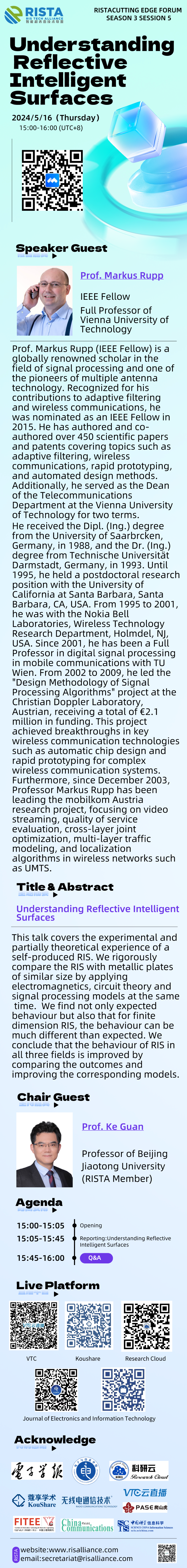 本次系列讲座是持续性的分享和互动活动,欢迎各专家老师积极报名自荐或推荐嘉宾,有意者请联系秘书处secretariat@risalliance.com。每次讲座信息都将通过RISTA公众号发布,请大家长按识别二维码关注。