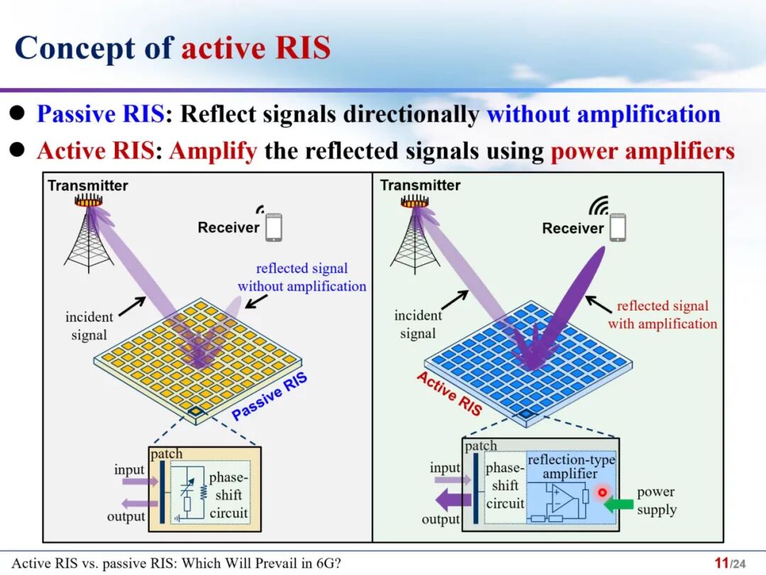 为解决上述制约RIS广泛应用的RIS“乘性衰落”问题,清华大学戴凌龙副教授(智能超表面技术联盟软件与算法工作组副组长)课题组与杨帆教授(智能超表面技术联盟副理事长)课题组开展了软硬结合的跨学科合作研究,设计、研制、测试了有源RIS这一新技术。与现有的无源RIS只能被动地反射信号而不能对其进行放大不同,有源RIS通过在每个(或者部分)RIS单元上集成额外的反射式功放,在对反射信号进行调控的同时,还能对其进行高增益的放大。