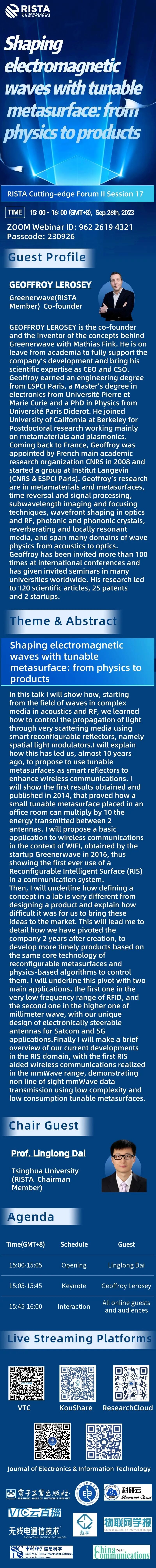 RISTA Cutting-edge Forum II Session 17 will be held at 15:00-16:00,Sep.26th,2023(GMT+8).