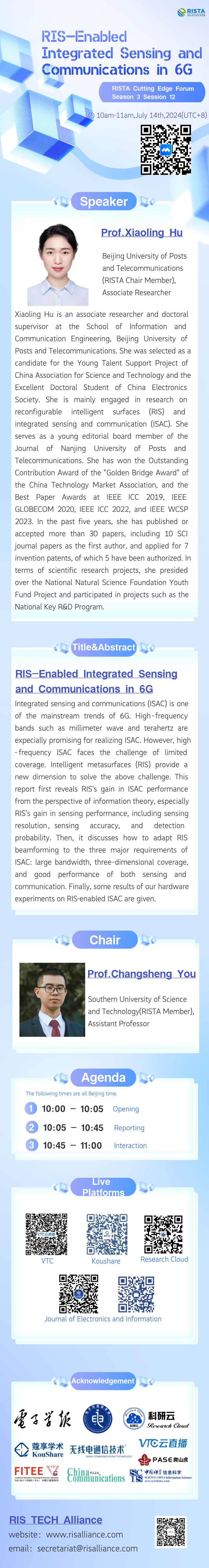 RISTA Cutting-edge Forum Season 3 Session 12 will be held at 10:00-11:00,July 14th,2024(UTC+8).