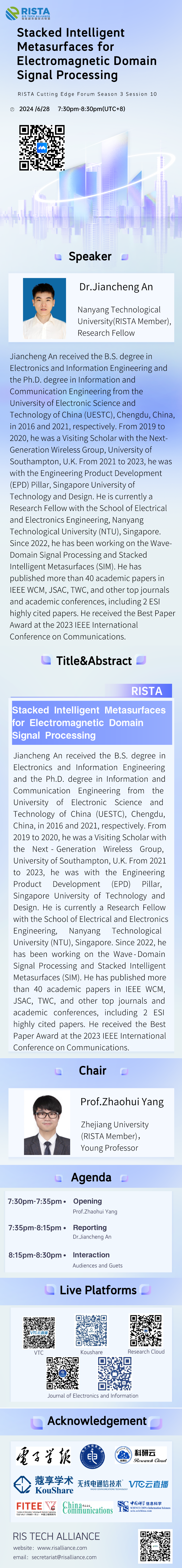 RISTA Cutting-edge Forum Season 3 Session 10 will be held at 19:30-20:30,June 28th,2024(UTC+8).